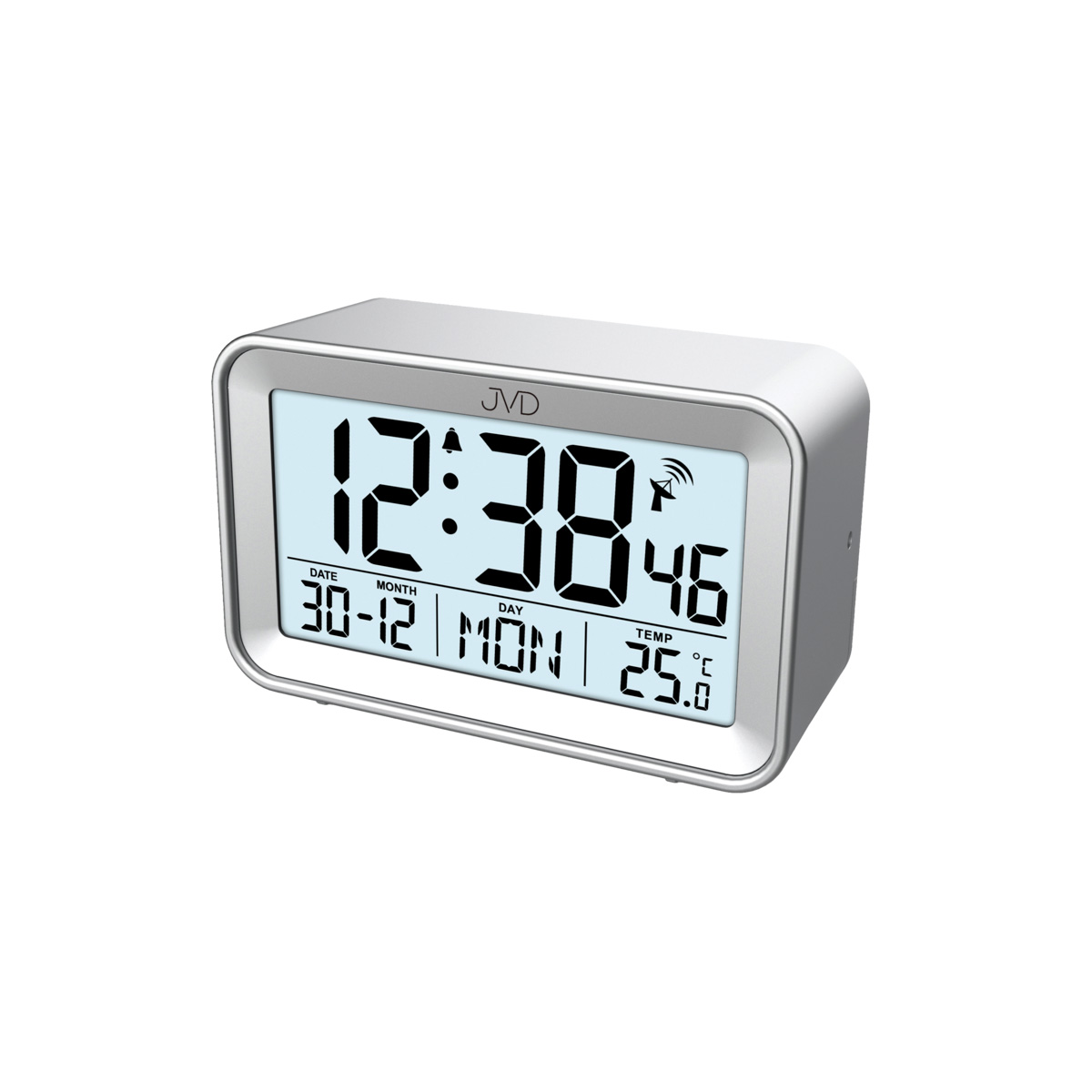 Funkce (slovník): čas řízený rádiem, datum, měsíc, den v týdnu, alarm, opakování buzení (Snooze), teplota vnitřní, osvětlení