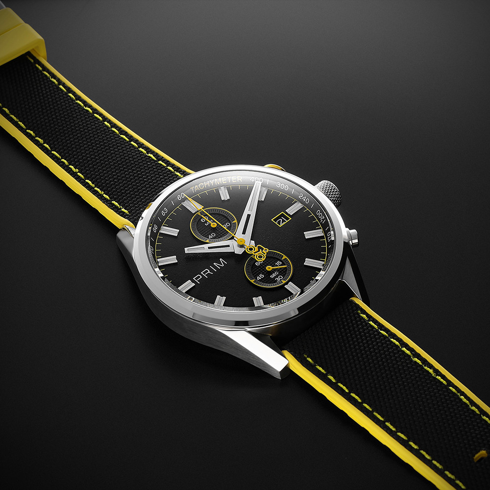 Sportovní hodinky PRIM Cycling W91P.13244.A přinášejí výrazný design a funkčnost do každodenního i aktivního života. Černý ciferník s jemnou strukturou je doplněn kontrastními žlutými prvky – od ruček, chronografů až po lemování datového okénka, což působí svěže, energicky a neotřele.