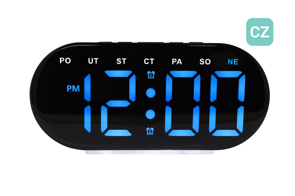 Krásný síťový budík s nočním světýlkem, možností nastavit až dva budící časy, ukazuje dny v týdnu v češtině, datum i teplotu. Samozřejmostí je i snížení jasu nebo odložení buzení.