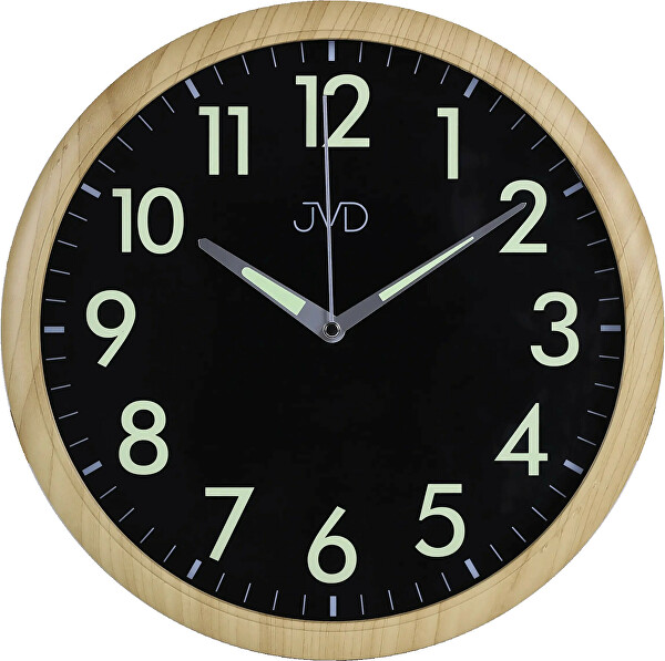 Nástěnné hodiny JVD HP301.2 kombinují klasický vzhled s moderní funkčností. Černý ciferník s výraznými svítícími číslicemi a ručičkami zajišťuje dobrou čitelnost nejen během dne, ale i ve tmě. Díky světlému dřevěnému rámu působí hodiny příjemně teple a snadno zapadnou do interiéru zařízeného v přírodním stylu. Tichý chod bez rušivého tikání oceníte zejména v ložnici nebo pracovně. Tyto hodiny jsou praktickým a zároveň estetickým doplňkem, který spolehlivě ohlídá čas a zútulní váš domov.